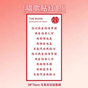 歌うステッカー 赤い封筒 白地 幸せな言葉 38*76cm テクスチャー紙+両面テープ付き