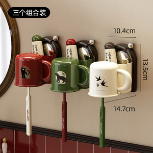 家庭用歯ブラシと歯磨きカップ収納ラックマウスウォッシュカップ壁掛けパンチフリーストレージアンティークスタイルバスルーム歯ブラシカップハンガー