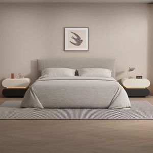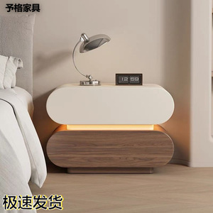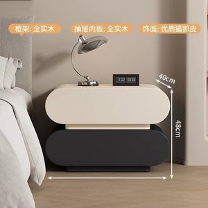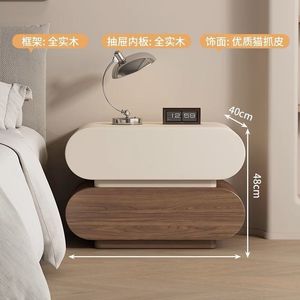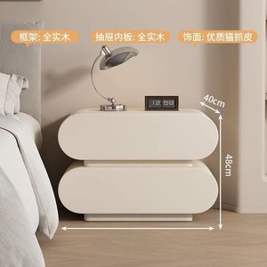 設置不要の大型無垢材ベッドサイドテーブルイタリアのミニマリストクリームスタイルシンプルモダンなミッドセンチュリースタイルの寝室のベッドサイドテーブル
