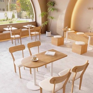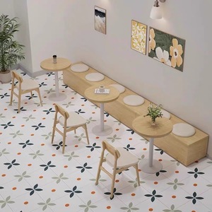 シンプルなログスタイルのミルクティーショップのテーブルと椅子の組み合わせ、デザートショップの壁に沿ったロングベンチ、カフェのカウンターシートソファ、商業用