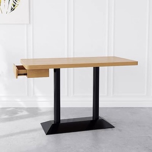 120*60 木色ロングテーブル + ステンレス鋼複合ベース