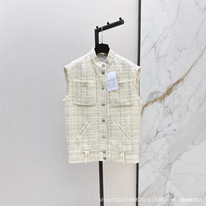 深センNanyou 25春夏レトロで雰囲気のある万能着痩せ高級チェック柄スタンドカラーウーブンベストジャケット