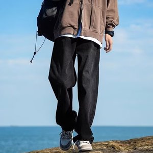 春と秋のメンズウォッシュドブラックグレーマイクロフレアジーンズアメリカンレトロミッドラインストレートパンツはハンサムに見えます