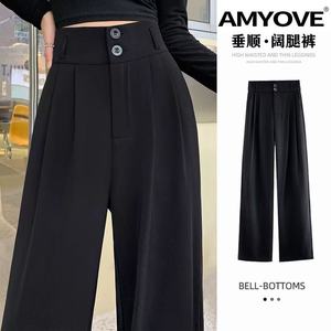夏の新しいスリムで狭いワイドレッグパンツ、女性用、多用途のスーツパンツ、ゆったりとしたカジュアルなドレープのブラックストレートパンツ