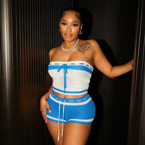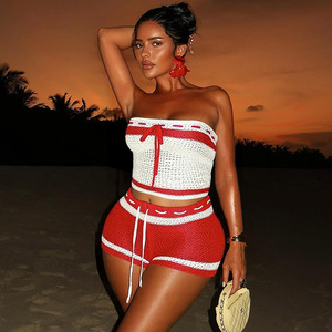 D25ST195 ヨーロッパとアメリカの国境を越えた女性のウールのロープストラップチューブトップコントラストストライプショーツツーピーススーツ