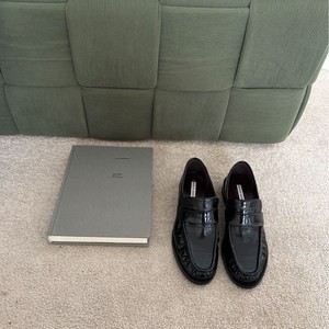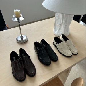 Lamode Classic2025 新しい夏のレトロな厚いヒールプリーツスリッポンローファーシングルシューズ小さな革靴