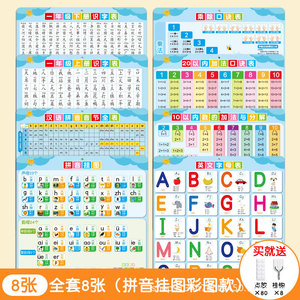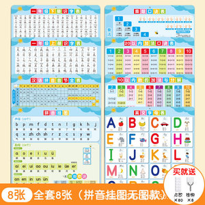 8 枚の写真の完全なセット (写真なしのピンイン壁掛けチャート)