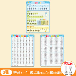 [写真 3 枚] ピンイン壁図 + 1 年生第 1 巻の読み書き表 + 1 年生第 2 巻の読み書き表