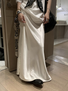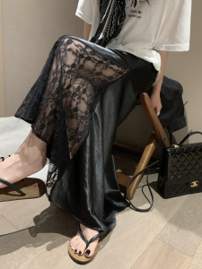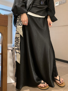 黒、白のレースステッチサテンヒップロングスカート女性のための 2025 夏の新しい女性のハイウエストスカート