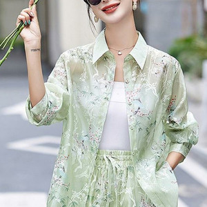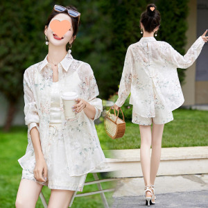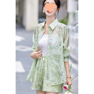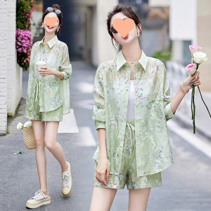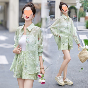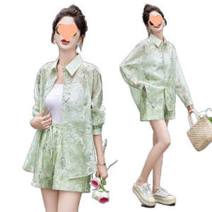 V5H2025 新中国風、国民風、西洋風、年齢軽減プリント日焼け止めトップとショーツ 2 枚