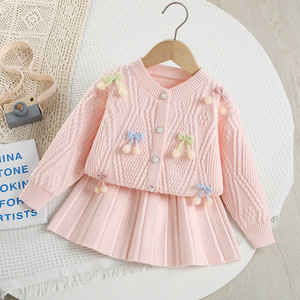 女童毛衣套装2025秋冬新款韩版宝宝洋气糖果立体蝴蝶结针织两件套