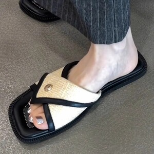 2025 新しいニッチ折りたたみフラットソールビーチサンダル女性の夏のカジュアルスクエアトゥオープントゥホリデービーチサンダル