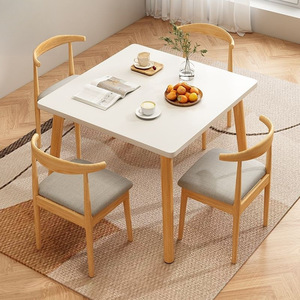 レンタルルーム用のダイニングテーブルと椅子の組み合わせセット、シンプルな無垢材の脚の正方形のテーブル、家庭用の正方形の小さなアパートのダイニングテーブル