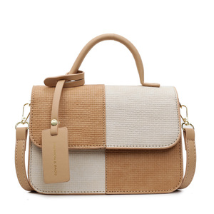 2025 新韓国スタイルスプライシングミニポータブル小さな正方形バッグハンドヘルドクロスボディバッグファッションコントラストカラーシングルショルダー通勤バッグ女性のための