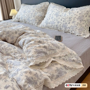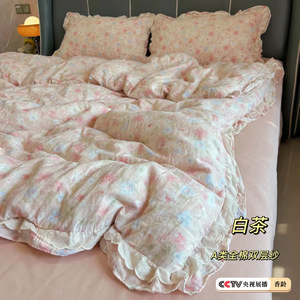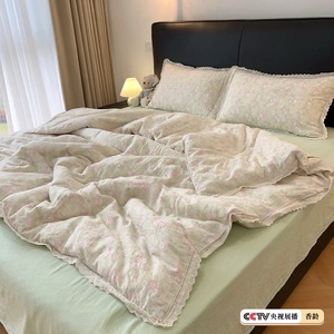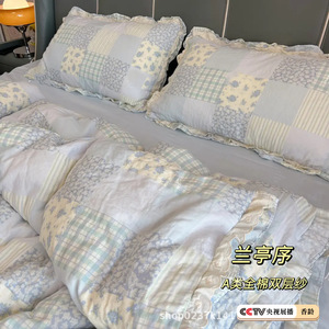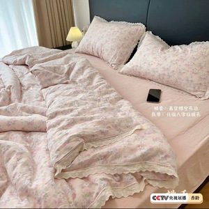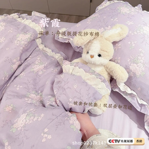 生放送同スタイル綿二重糸4点セット、二重レース母子グレード純綿ガーゼ学生寮3点セット