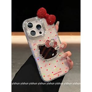 ラブウェーブドット立体フラッシュダイヤモンドkt猫ミラーiPhone16promax Apple 15携帯電話ケース14新モデルに適しています