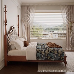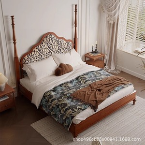 Dashima アッシュ無垢材ベッド 1.8m 小さなマスターベッドルームダブルベッドハイエンドアメリカンフレンチレトロスタイルベッド