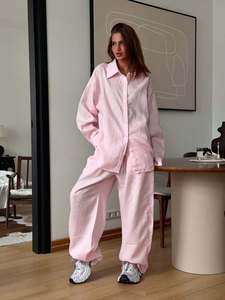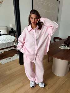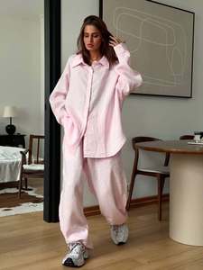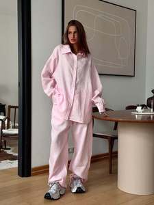 ヨーロッパとアメリカのスーツ 2025 新しい秋と冬の純粋な綿カジュアル通気性ウェアラブルスーツファッション長袖シャツホーム服