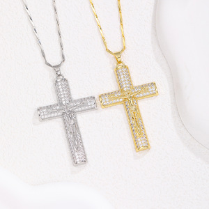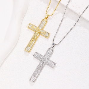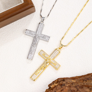 Amazonで人気のファッションライトラグジュアリー銅製ジルコンクロスペンダントネックレス、人気の多用途ポートレート卸売幾何学模様
