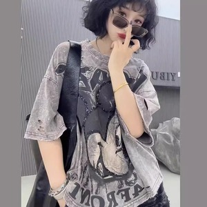 特大サイズ 1.0-150kg ファット mm 夏漫画ルーズラウンドネック Tシャツレディース半袖ファッショナブルな年齢を減らすトップトレンディ