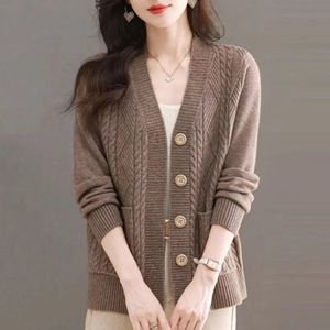 春のファッションレイヤードニットカーディガン女性の春と秋の無地の新しい厚みのある中年母親のルーズセータージャケット