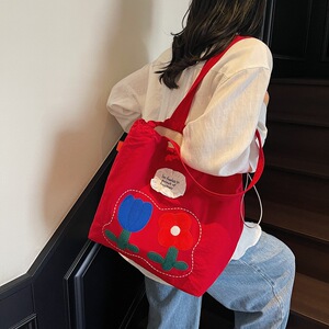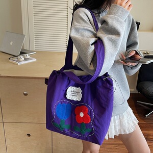 2025 夏の新スタイルナイロン刺繍巾着トートバッグ女性の韓国スタイルリラックスニッチ大容量ショルダーバッグ