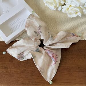 AB面のプリントの網の紗のサテンの方の巾のシュシュは馬尾の紐の大きい腸の輪の高級感のレトロな気質の髪のひもの女性を刺します。