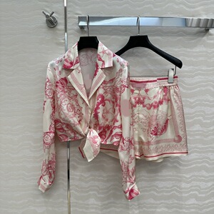 深センNanyouの新しいファッショナブルなマルベリーシルクスーツ、スーツカラープリントシャツ、カジュアルハイウエストストレートワイドレッグショーツ