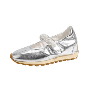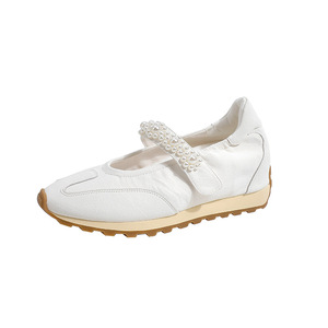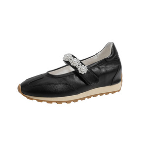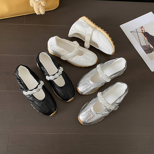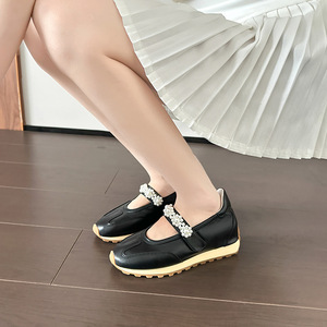 牛革バージョン~ラウンドトゥメリージェーン婦人靴2025新作パール万能カジュアルパール道徳訓練靴アガムシューズ女性用