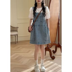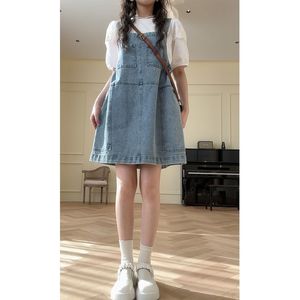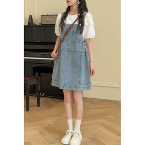 小柄な人の年齢を減らすファッション韓国風ルーズカジュアルマルチポケットウエストサイド伸縮性調節可能なデニムサスペンダースカート女性夏用