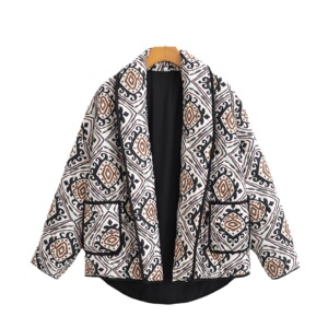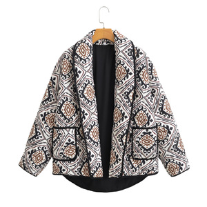 25秋冬新作人気商品 欧米風ファッションプリントフェイクツーピースコントラストカラー小襟付き綿服