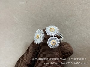 中世スタイルのイタリア織り彫刻シルバーデイジーリング、つや消しの軽い豪華な気質、多用途の宮殿スタイルの人差し指リング