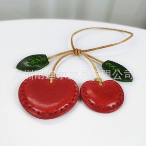 カスタマイズされたチェリーペンダント、手作りの本革のかわいいチェリーペンダント、立体的なバックパックキーホルダー、バッグペンダント、オーダーメイド