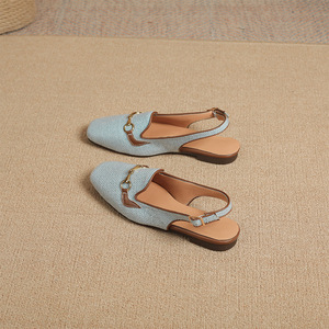 ファッショナブルなメタルバックルトゥサンダル女性のための 2025 夏の新しいファッション気質ワンラインバックルスクエアトゥフラットシューズ