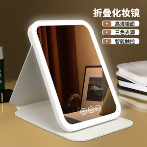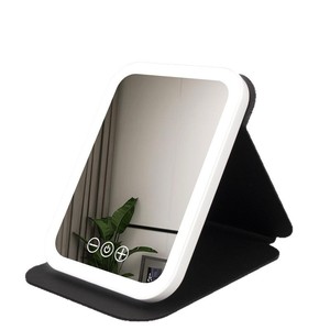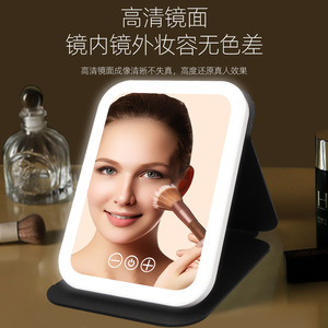 工場卸売クロスボーダーホットスタイル折りたたみ LED 化粧鏡 PU レザーケースポータブル学生寮化粧鏡ライト付き