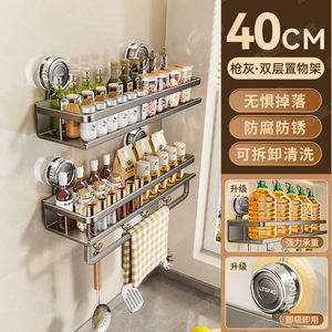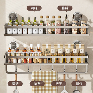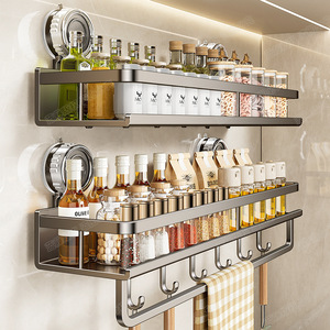 キッチン吸盤調味料収納ラック吊りロッドハンガー調味料ラック多機能多層壁掛け収納ラック
