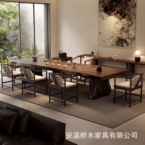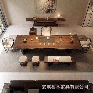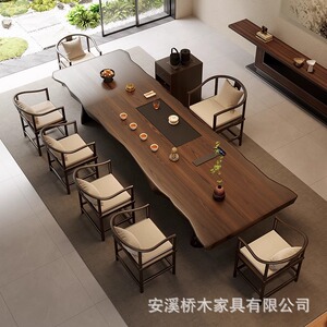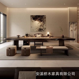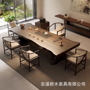 新しい中国風の無垢材の大きなボードオフィスホームティーテーブルと椅子の組み合わせハイエンドの宋の美的ティーテーブルシンプルなコーヒーテーブル