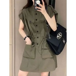 9393m 特大サイズ 150kg ハイエンドレトロワークウェアドレスルーズでファッショナブルなウエスト痩身ワークウェアドレス女性用