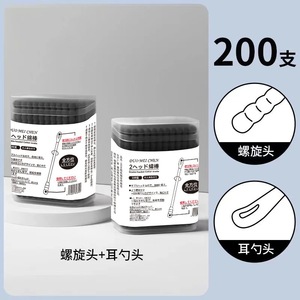 Duomeichen 耳かき綿棒メイクアップ双頭耳かきツーインワン黒綿棒家庭用クリーニング綿棒