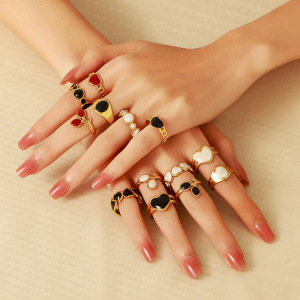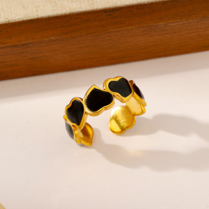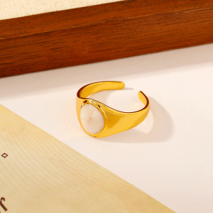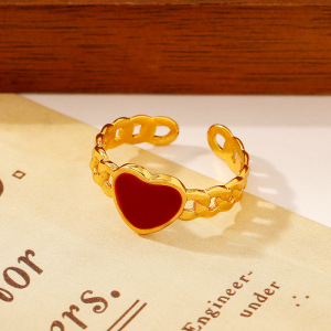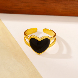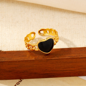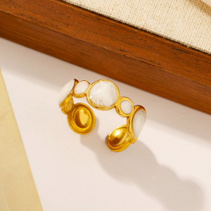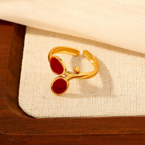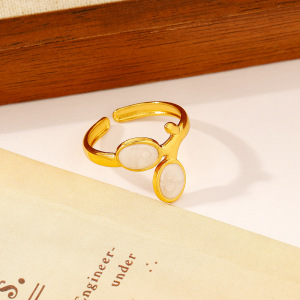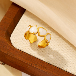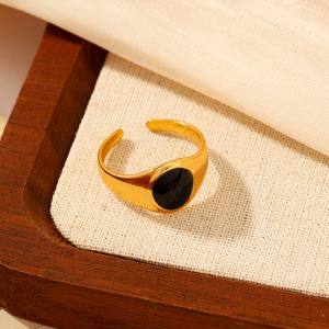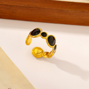 ヨーロッパとアメリカのファッショナブルなオイルドロップオープンステンレススチールリング、女性用、色あせしない、シンプルなインスタイル、ハイエンドの18Kゴールドメッキリング