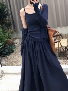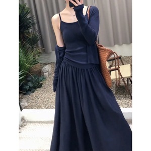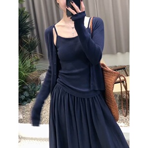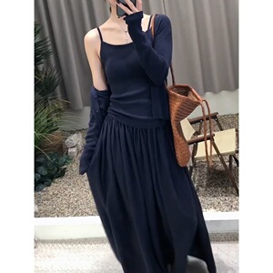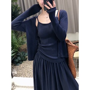 長袖ニットカーディガンサスペンダースカート3点セット春新作シンプル無地カジュアルレイジースタイル痩身スーツ