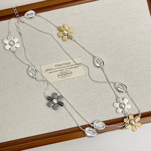 ファッショナブルなメタルフラワーコントラストゴールドとシルバーのスプライシングネックレスインハイエンドロングマルチウェアセーターチェーンウエストチェーン