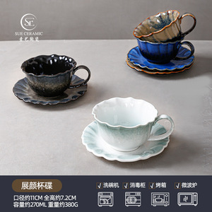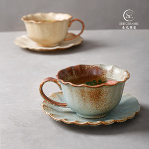 わびさび風セラミックコーヒーカップとソーサーセット、軽くて豪華でハイエンドのラテカップ、絶妙なアフタヌーンティーカーブルセラミックカップ