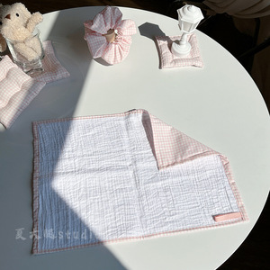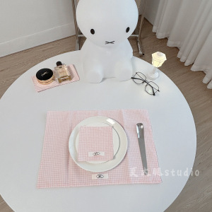 ライトピンクの小さな正方形の韓国インスタイルのテーブルクロス、プレースマット、ナプキン、写真小道具、火傷防止テーブルクロス、雰囲気小道具