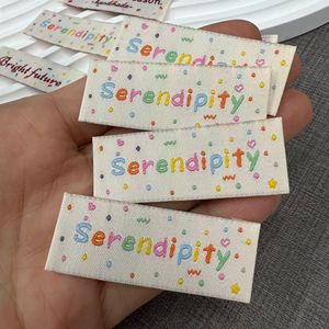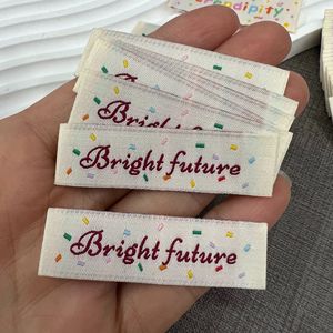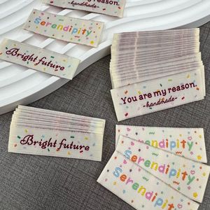 キャンディーカラーの小さなラベル在庫あり、可愛くて見栄えの良い衣類や帽子の商標ラベル、ラベル商標メーカー卸売