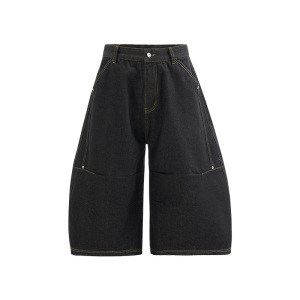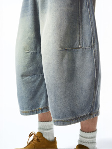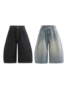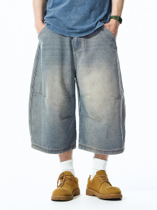 捷展男服 _ 立体裁断七分曲刀ジーパン2025春夏新作レトロ洗水して古い半ズボンを作ります。