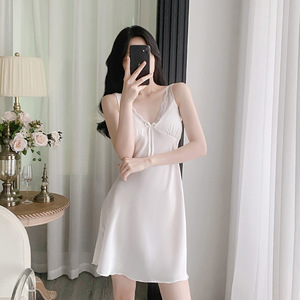 アイスシルクパジャマ レディース 夏用 胸パッド付き キャミソールナイトドレス レディース 夏用 胸パッド付きアイスシルクナイトドレス 外出着としても着用可能