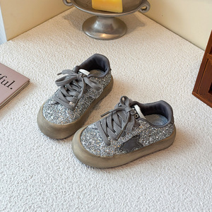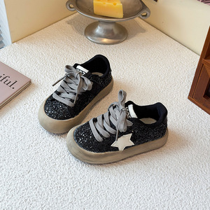 儿童板鞋亮片休闲公主童鞋秋2025新款魔术贴单鞋男女童星星运动鞋