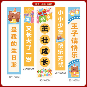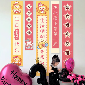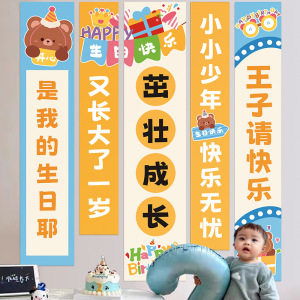 ハッピーバースデーシーン装飾吊り布男の子と女の子子供ロマンチックな雰囲気の小道具背景壁バナー
