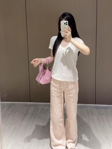 リネン100% サマースタイル ラウンドショルダー Vネック 高級半袖Tシャツ